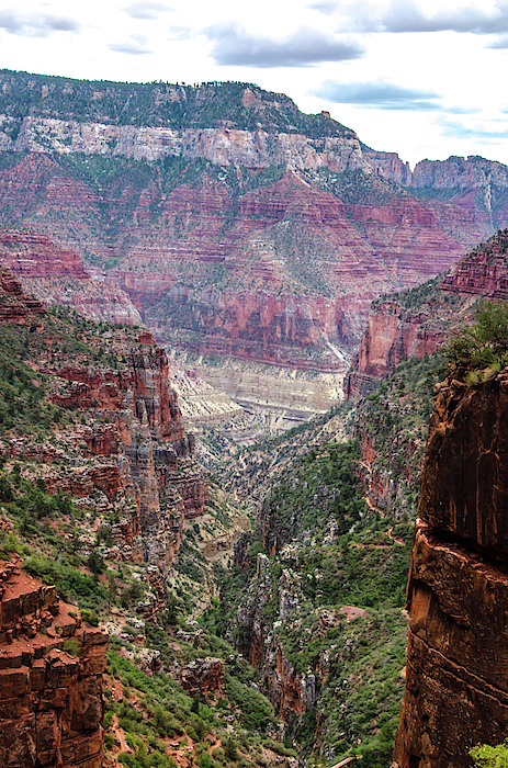 At 8200 feet in elevation, the North Rim of the Grand Canyon presents a spectacular view of the Colorado River lined with the deep red and tan colors of rock layers with names like Coconino, Kaibab, Toroweap, Hermit, Supai, Redwall and Temple Butte.